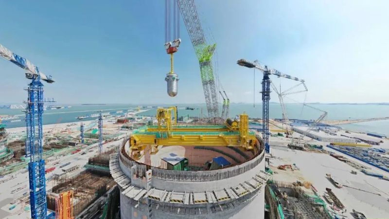 2021年10月19日,由中國核電工程有限公司總承包的第15臺核電機組——“華龍一號”批量化建設漳州核電1號機組反應堆壓力容器安全穩妥吊裝成功,整個吊裝過程中所用的吊具均由巨力索具提供,開創了國內自主三代核電反應堆壓力容器在核島外部翻轉后垂直引入的“華龍新記錄”。