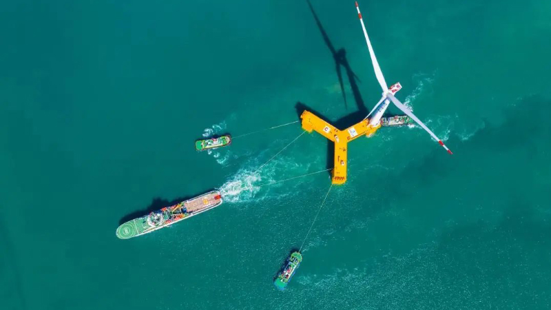 近日,從廣東茂名港出發的中國首臺浮式風電機組于7月11日成功抵達陽江海上風電場并開始進行系泊索安裝。