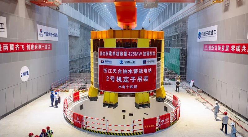 國家“十四五”重點實施項目、世界最高水頭抽蓄電站——天臺抽水蓄能電站2號機組定子精準吊裝就位,巨力索具為2號機定子的吊裝工作定制了配置八組起吊桿的定子吊具,確保其能夠承受巨大拉力和沖擊力。