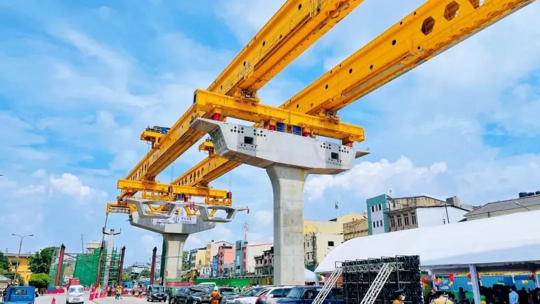 科倫坡港口高架橋項目是斯里蘭卡政府基礎建設發展規劃的重點項目,主要工程內容為修建從新克拉尼大橋至科倫坡港口雙向四車道高架橋,該高架橋全長5.27公里,橋面幅寬25m,平均跨徑50米,采用短線法節段預制箱梁和架橋機逐孔拼裝工藝施工,需要1200噸的節段拼裝造橋機來完成施工任務,巨力應急憑借豐富的海外施工經驗和行業業績成功中標1200噸的節段拼裝造橋機裝備。
