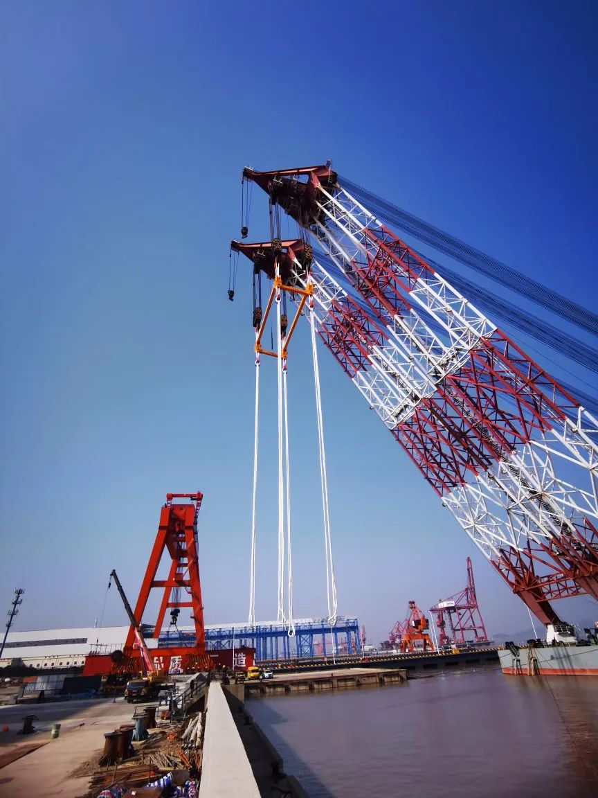 近日,青龍門特大橋主塔防撞鋼套箱順利吊裝上船,為下一步鋼套箱的整體安裝做好了準(zhǔn)備。巨力索具為其提供定制化吊裝產(chǎn)品及專業(yè)化吊裝方案,整個(gè)吊裝過(guò)程安全有序可控。