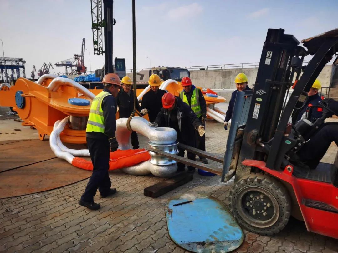 為確保防撞鋼套箱的順利吊裝,巨力索具項(xiàng)目團(tuán)隊(duì)積極與青龍門大橋項(xiàng)目部對(duì)接交流,提供吊梁、卸扣、高強(qiáng)環(huán)形吊索等2400T鋼套箱吊具,克服作業(yè)環(huán)境帶來(lái)的難題,從專業(yè)角度配合完成吊裝。