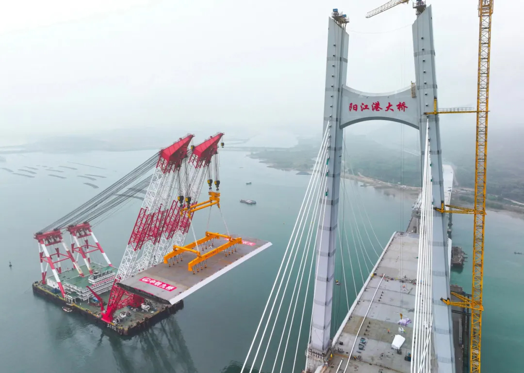 見縫插針!巨力索具直擊陽江港大橋合龍瞬間