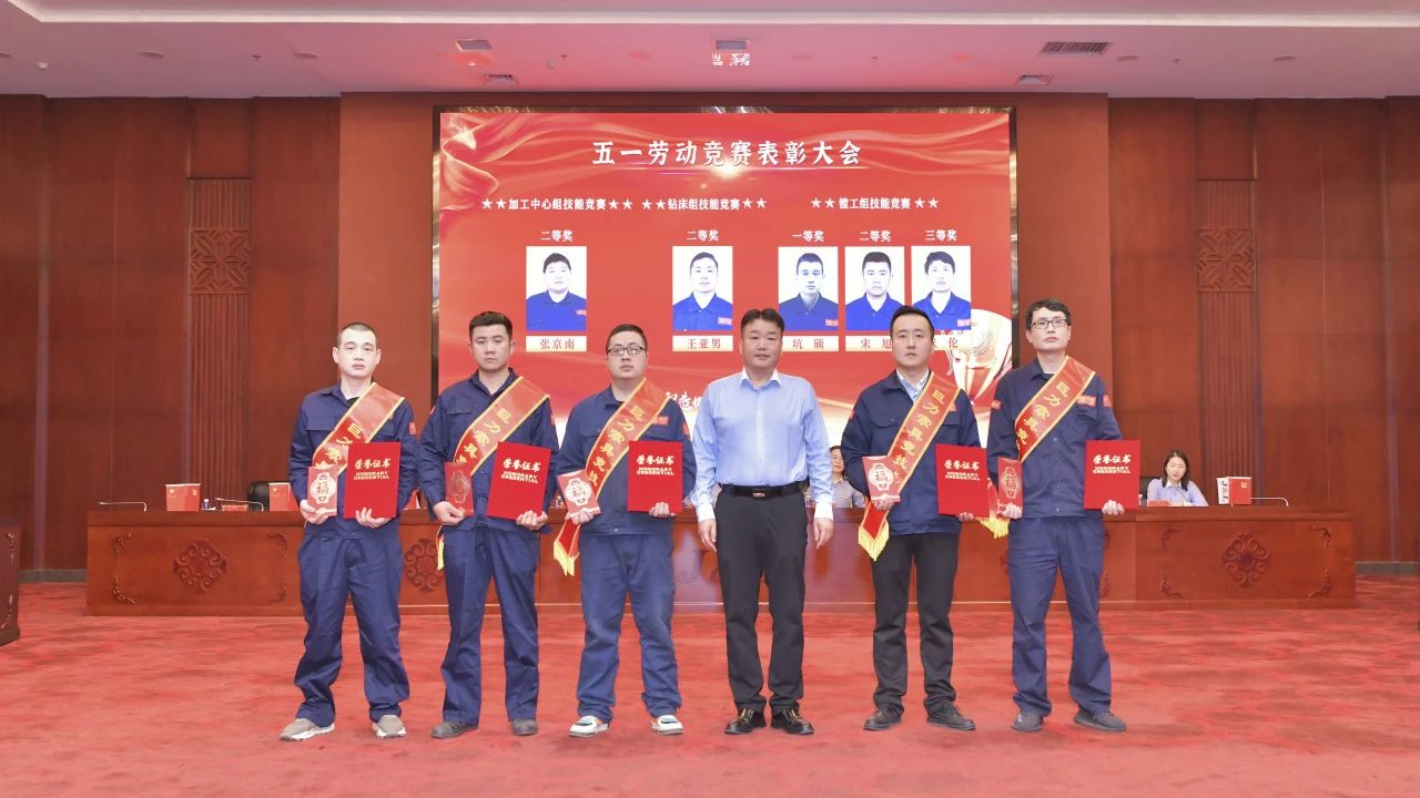 會議表彰了榮獲先進工作者、在競賽過程中成績優(yōu)異者,與會領(lǐng)導(dǎo)為獲獎職工頒獎。