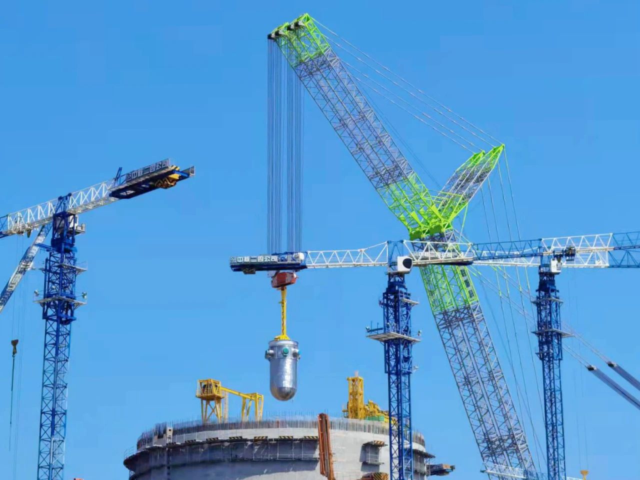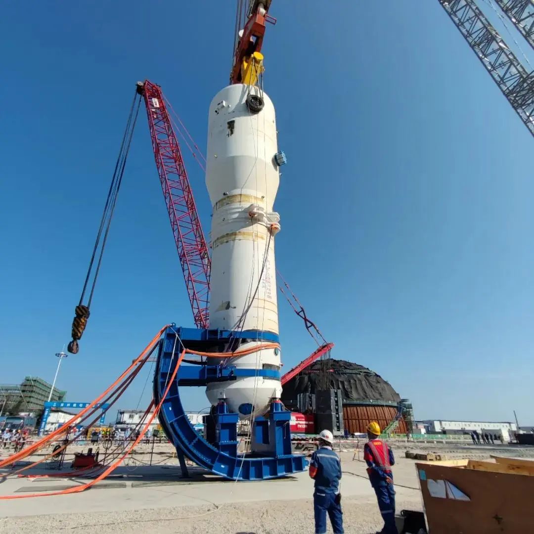 2021年10月,漳州核電1號機組反應(yīng)堆壓力容器吊裝成功,吊裝過程翻轉(zhuǎn)、吊裝、就位難度極大,巨力索具項目團隊聯(lián)合各部門共同確定最終吊裝方案,順利完成吊裝,吊裝過程中所用的吊具均由巨力索具提供。