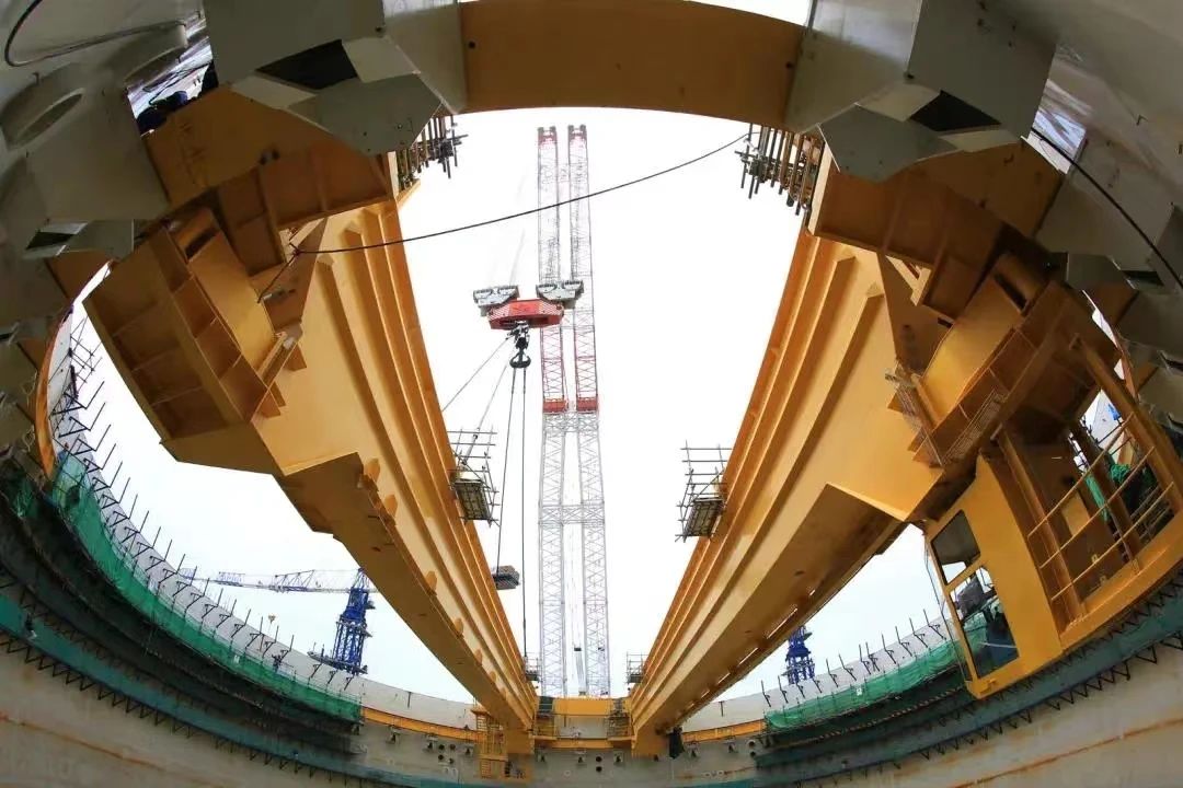 2017年5月8日,環(huán)吊主梁吊裝就位
