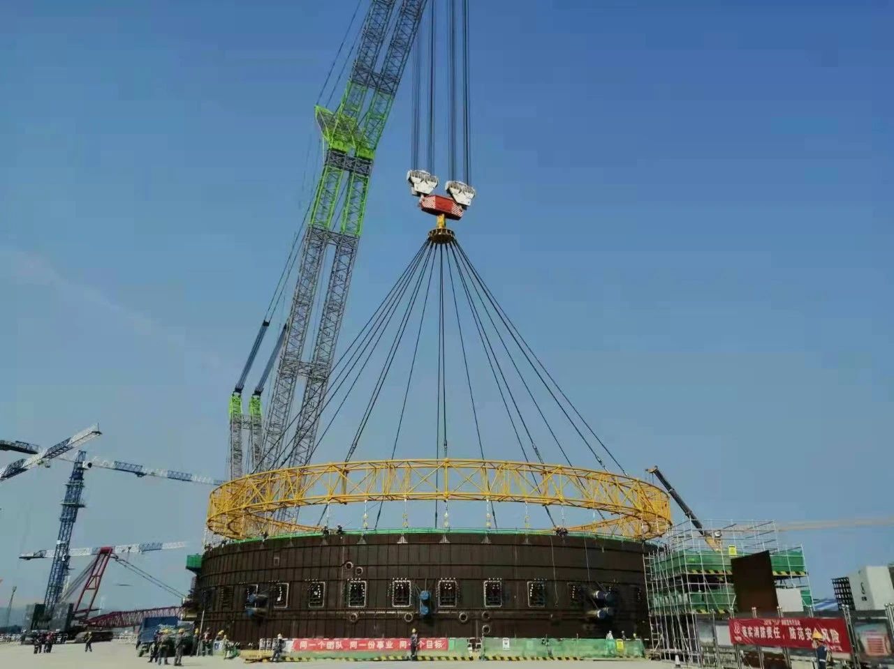 2022年9月,巨力索具提供高質(zhì)量的吊裝索具助力中廣核太平嶺核電項目2號機組安全殼內(nèi)穹頂?shù)跹b作業(yè)順利完成,巨力索具項目團隊多次召開專題會對吊裝方案、生產(chǎn)工藝進行深入研究,為項目吊裝工作順利進行筑牢安全根基。