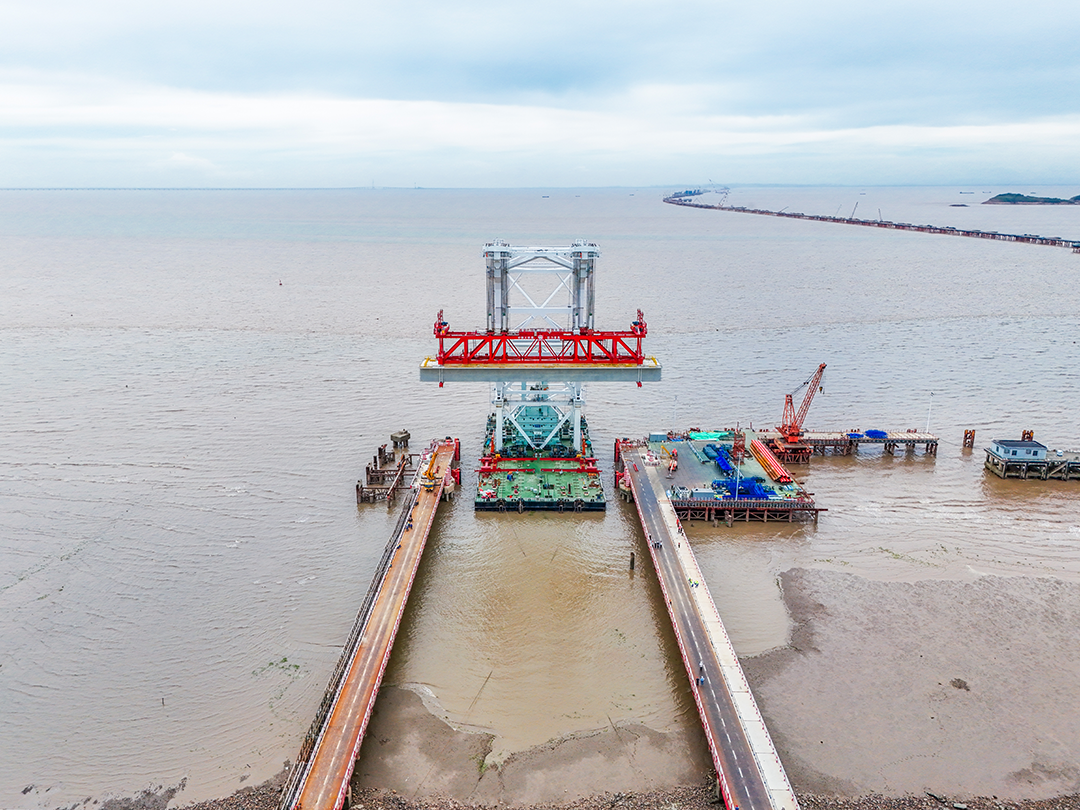 杭州灣跨海鐵路大橋全長約29.2公里,設計時速350公里,是新建南通至寧波高速鐵路的控制性工程。建成后,將成為我國“八縱八橫”高鐵網沿海通道的重要組成部分,對完善區域路網結構布局,方便沿線人民群眾出行,推進長三角一體化高質量發展具有不可估量的意義。目前,大橋建設正按計劃穩步推進,預計2026年底將完成海中引橋主體工程,2027年底建成通車。