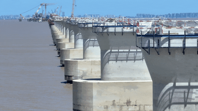 杭州灣跨海鐵路大橋全長約29.2公里,設計時速350公里,是新建南通至寧波高速鐵路的控制性工程。其中,海中引橋采用230孔80米/60米預制箱梁,最長聯達3080米,其“超長聯、大跨度”創下了高速鐵路混凝土連續梁的世界紀錄。